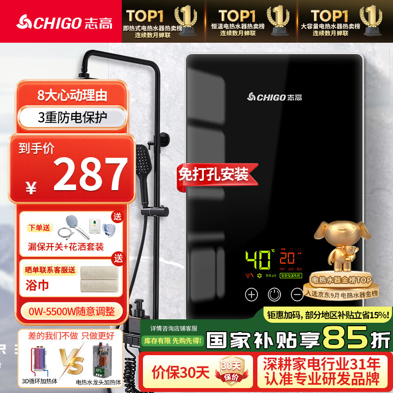 志高电热水器KBR-F60是否值得买?测评好不好?加热好快,昨天正式使用,睡觉前断电,今天下午6点多开机,wifi加热,几分钟时间,估计不到五分钟,温升到50度,停止加热,我设置是50度,既可以手机app控制,也能面板操控,方便得很,不愧为一级能效,80%加热率,非常满意。50升家用电热水器2100W速热加长防电墙经济节能下潜加热,抗腐蚀耐用小巧易操作50-H111B,2020年购买过好几台,安装在小户型房子不错,所以这次618搞活又买了6台,目前装修没完工暂未安装,质量应该不错,以前买的用了三年还很好。