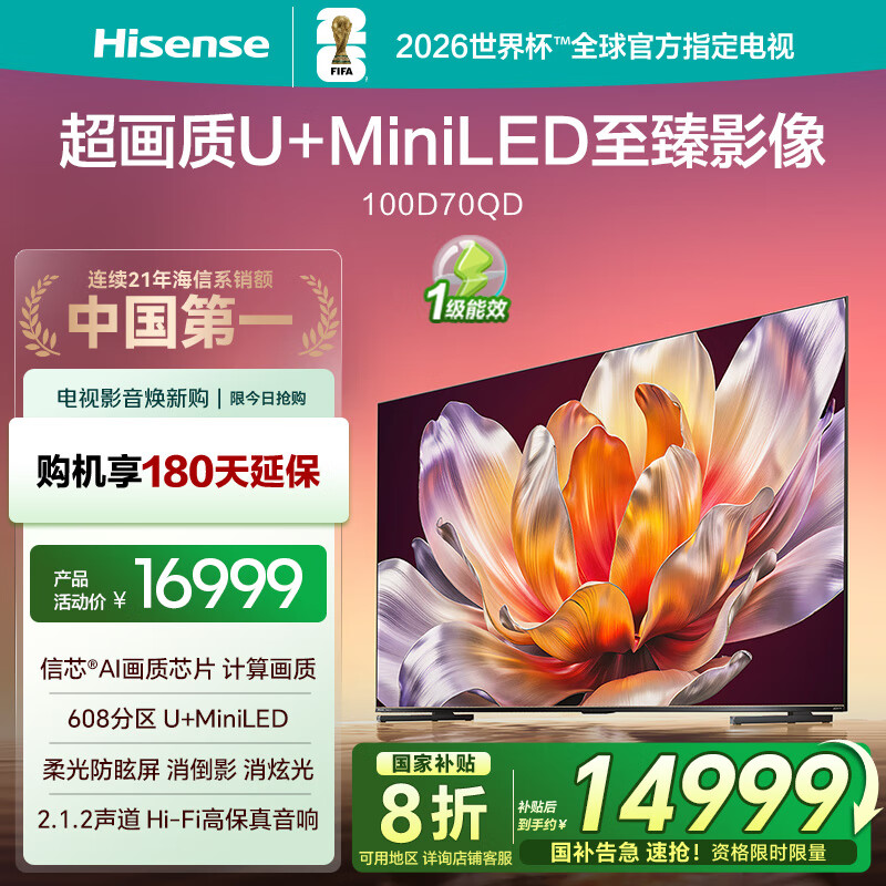 点击>>查看海信100D70QD最新优惠底价>>