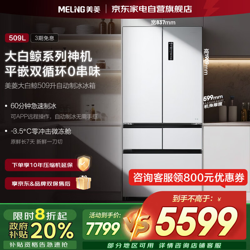 点击>>查看美菱BCD-509WPU9CZX最新优惠底价>>