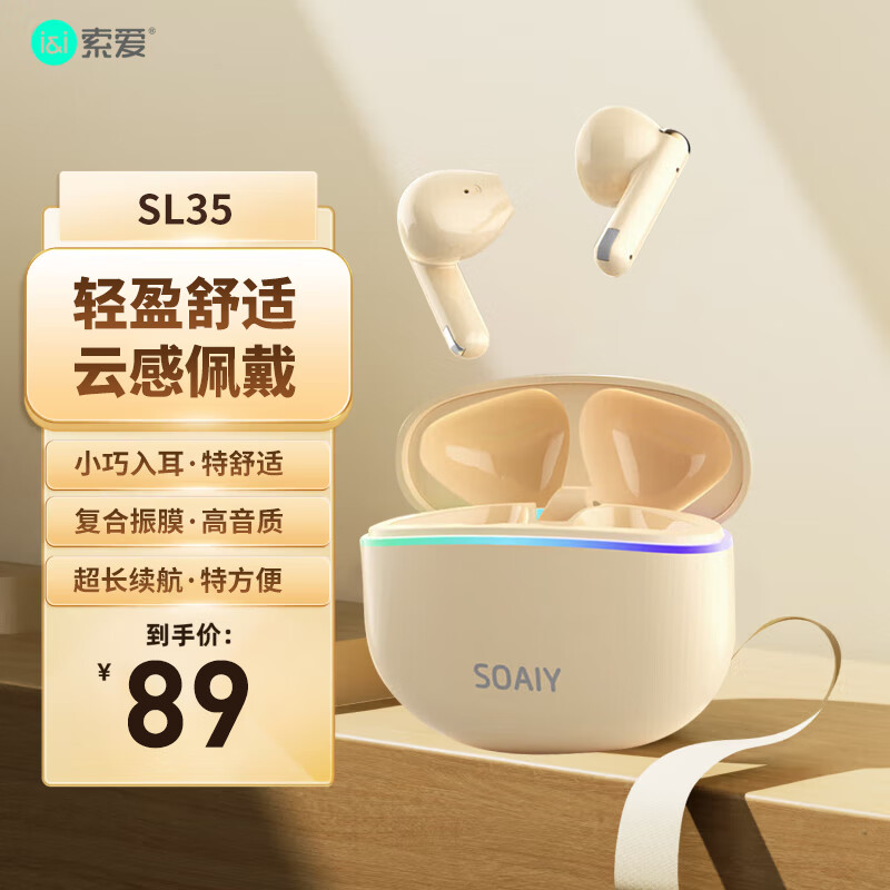 索爱蓝牙耳机SL35使用感受点评,性价比高吗?比较差。三点体验:一、出盒开机功能有问题。开机必须入盒出盒,经常拿出来带耳朵上,半天没声儿,才发现没开机,又没开机功能,只能放回盒子再拿出来。二、没有手动开机关机功能。长时间放一旁不连接时自动关机,要想再用,必须要入盒出盒。三、待机时长确实比40块的耳机强不少做工质感:做工精美细致,磨砂质感拿在手里手感很好,开盖秒链接,还带有弹窗动画和电量显示音质音效:音质也很不错,12mm动圈单元,还带有降噪功能舒适度:尺寸大小刚刚好,不会涨耳朵,也不会松动下滑续航能力:充一次电可以用一周