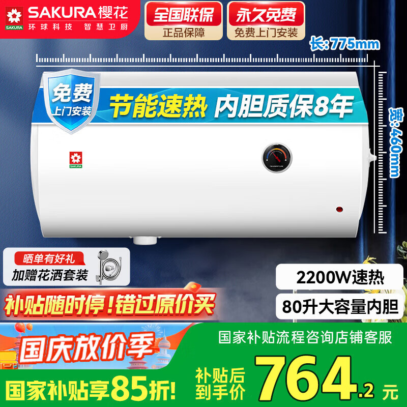 樱花电热水器SHW-80QY15入手测评,使用感受点评 |