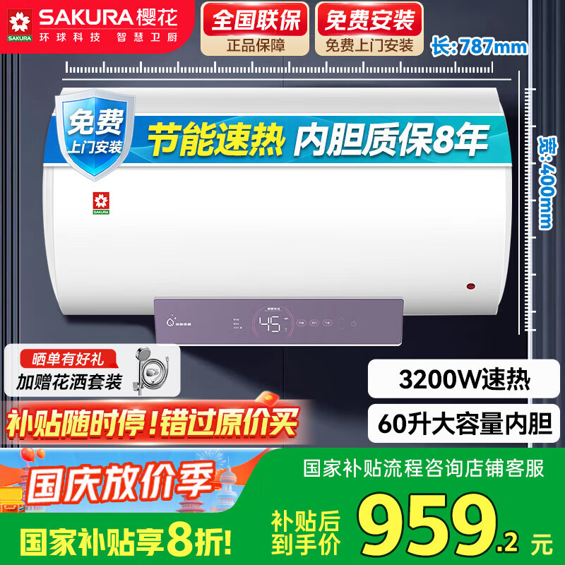消费者爆料樱花SHW-60QY17电热水器使用感受点评,真的好吗?推荐各位朋友来看看,省心省力省时师傅送上楼,收到一段时间了,大小合适,我和老公都很爱,非常划算的,一级能效,非常棒,也变得精致了起来,听同事说她买的其他的用着好大声,实物效果真不错,物美价廉,真心喜欢,机身跟时尚,品牌不错,说明书文字清晰,内容描述详细,非常漂亮,简单素雅,运行安静,我要疯狂推荐给朋友这款热水器体积不大,短粗形状,占空间小,热水速度还很快,物美价廉,很超值的一款电热水器,好用不贵,用电水的东西,安全第一,京东质量有保证,相信京东,今天下单明天就到货安装了,还能以旧换新,真是特别省心,可靠,买电器还是京东质量有保证,售后服务也很棒。