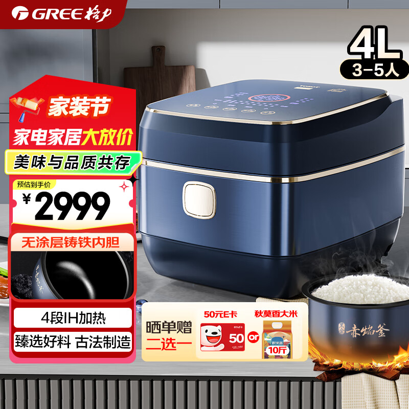 的电饭煲这是买的第四个了。外观简单大方,除了煮东西时间久一点,其他没啥毛病。4L的容量一家四口用绰绰有余。可惜没配汤勺,也没提手。总之很不错。