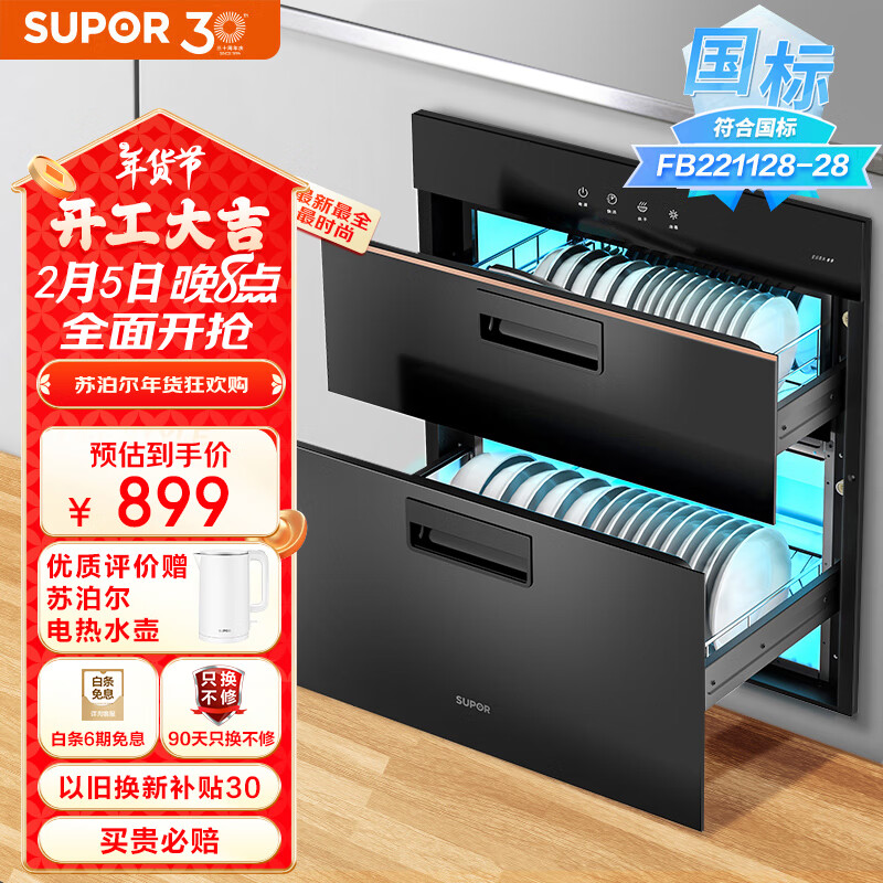 外形外观:高端大气上档次。产品质量:做工精细,质量优消毒效果:消毒效果好,里面无异味。空间容量:设计合理,空间大。产品质量:一直用苏泊尔,质量杠杠的。