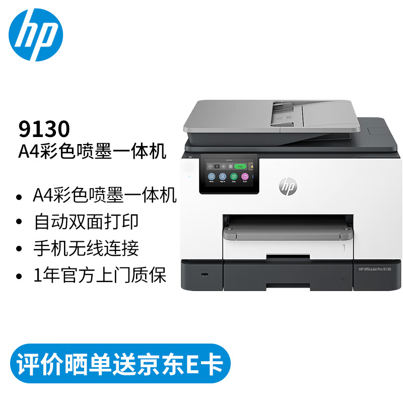 咨询一下惠普OJP9130打印机复印扫描机一体机使用感受点评,评价如何?很好用!先赞一个!产品包装:包装箱的外观,质量都很好!外形外观:尺寸小巧,线条简洁!外设计上略显呆板。打印速度:打印速度:无线打印的反应很快,对打印的速度很满意!打印效果:清晰度挺好!操作难易:操作简单,安装上网查一下,几本是傻瓜操作。复印,扫描都很简单。其他特色:暂时还没有发现产品包装:挺结实的,物流速度挺快,隔天到。外形外观:方正,个头啊不算小。打印速度:单面一分钟20页,家用够用了。打印效果:听清楚的。操作难易:挺简单的,连上我的nas和wifi就好了。其他特色:家里都是系统,手机,电脑直接可以打印。