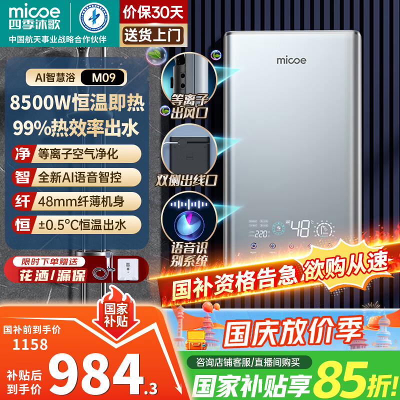 人气博主评价四季沐歌DSK-H85-M09电热水器优缺点点评,好不好?首先说商品,关于包装,这种程度的包装,不用担心磕碰,再来说质量,外观很时尚,漆面绝绝子,颜色高级,再说制热,亲测很快,智慧洗很方便,无线控制很方便,可以随时预热,到家就洗,然后就是免清洗功能很先进,但是我刚安装,不方便做评价还。然后就是安装,师傅非常负责且手艺好,收费合理。客服态度好。家里一直都用的热水器,上台机子内胆破了就换了同型号的机型,原以为同型号机型尺寸相同,安装应该只要旋上进水管就行,没想到同型号新老机型的尺寸有些许差异,所幸安装及时,下单隔天中午送货,**以旧换新,当天中午把旧机拆走,联系师傅下午就来安装,整个流程还是挺高效的。热水器24小时开着,恒温效果不太清楚,制热速度毕竟功率就在那里,所以还是可以的,能效从以前的3J提高到了二级,外观没太大变化,适合小家庭使用。
