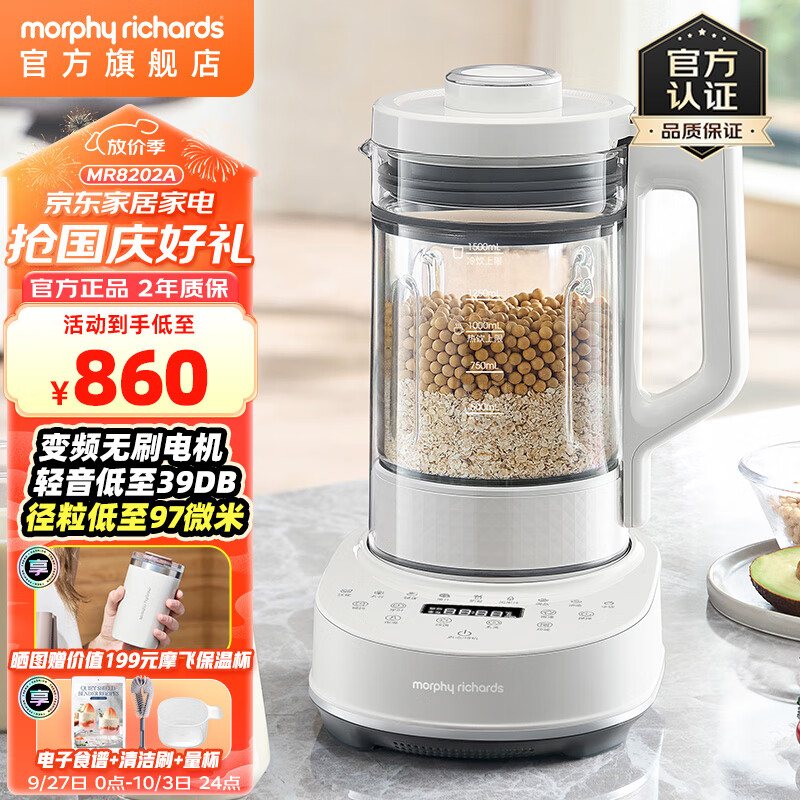 剖测分析摩飞电器MR8202A白色破壁料理机是否值得买?测评好不好?外包装很好,没有一点破损。先做了海拔测试,一会会儿的时间,连续几天打了豆浆、米糊,豆浆大概20多分钟,不用泡豆子,直接东西加上就行,真的非常方便,声音也不大,比起传统的破壁机,身材清了很多,储藏起来也方便。煮的时候没有溢出来的现象,也很好清洗,总之很喜欢,感觉物超所值!给朋友买了几个,用着说挺好,又给家里老人买了一个,原来家里用的比较大,还重,老人嫌重还不好清洗,就不用了,最近半月板出现点儿问题,合计喝点豆浆补补钙吧,就买了这个,老人反馈很满意,豆浆很细腻。买之前对比了一下其他品牌,这个是小破壁机里转数最高的了25000,因为给家里老人买的,没有拍到图片