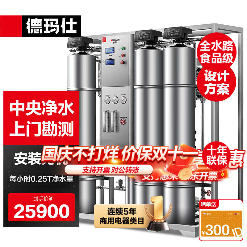 盘点德玛仕DMS-RO-0.25T值得买吗?德玛仕DMS-RO-0.25T口碑如何?京东购物就是快,今天下单第二天就送到,中午就和老公一起按好了。用了一段时间,才来评价,安装简单,使用方便,出水量大。经过了一次市政水管维修,没过滤的水像黄河水,过滤后是非常清澈,杂质含量低于150,属于优质一级能效 节能小帮手2档出水 各有用途出水速度:出水速度不算特别快静音效果:比较静音 关闭柜门几乎没有声音外形设计:中规中矩的设计 复核大部分人都审美安装服务:上午才收到货 下午师傅就上门安装完成物流速度:次日达 我非常喜欢其他特色:水龙头带感应灯 比较有氛围感