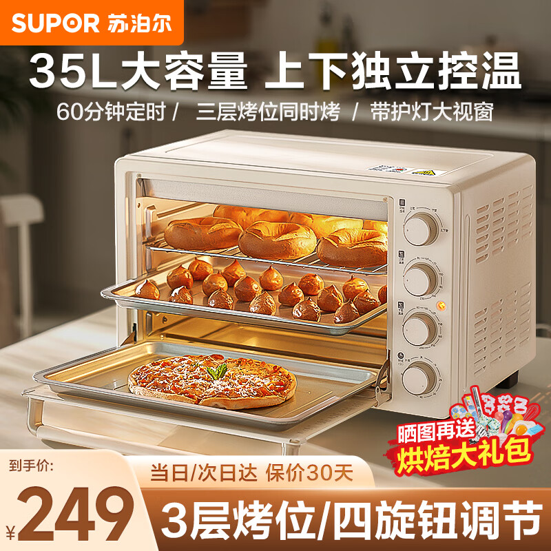 达人分享苏泊尔OJ35A801电烤箱测评好不好?测评怎么样?一直心心念念的想买个烤箱来做美食,看了很多终于选定了这款颜值爆表的“美的烤箱”,哈哈,跟我的美的电饭煲颜色一模一样,回来迫不及待的做了“曲奇饼干”,烤了鸡翅、烤鱼,都是我第一次做哦,买的烤箱配了美食的书,还有烘培课程,哈哈,一学就会!真的太开心了!感谢!一直相信美的的质量,杠杠滴!强烈推荐喜欢烘培的朋友入手这一款!爱了!爱了!(差点忘了夸京东的快递了,第二天就收到了,感谢!家电都是京东买的)烤箱不错,风炉平炉一体的。温控准确,平炉和风炉我都测了下温度。比我之前买的空气炸锅好多了,空气炸锅基本闲置吃灰了。这次买烤箱算是买对了,烤出来的东西保留了食物原有的水份,鲜嫩多汁。特喜欢海氏家的烤箱。还送了防烫手套。给海氏赞一个。物流快,本地仓,京东快递送货到家的。