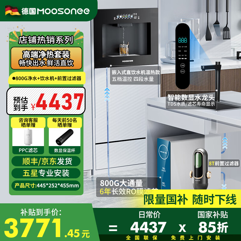到货特别快,师傅很快就上门安装了。台下只有一个三相插座,不过师傅圆满的解决了。只有一个三相插座还有厨宝的,不要买带加热式的净水器,因为厨宝和加热净水器都1500W,需要单独开的两个插座才能负担。买这个不到加热的就没有问题啦。水质很好,水量也很大,这款机器的优点就是水量很大,体积比别的款大一点点完全没问题,性价比之王。客服的介绍也很好,完全没有因为价格给客服推荐贵的。介绍每个产品的特点,让客服按需选择,给客服点赞,大品牌,永远值得信赖!