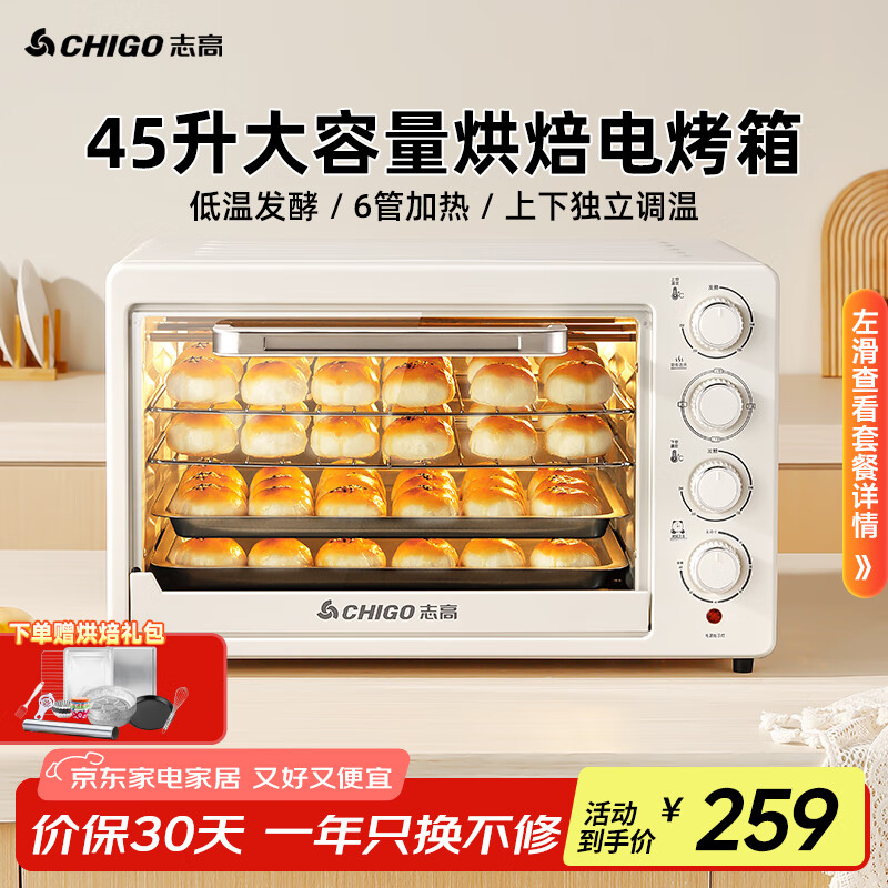【反馈】志高JSD-45电烤箱测评好不好?性价比高吗?发货很快。物流一如既往很速度!!烤箱大小合适,我们家不经常弄这些,这个大小就足够了,烤了一次红薯,时间温度没弄好,红薯烤出来太干了,下次要改改时间,还有烤盘上面弄了好多红薯的黄色。洗也洗不掉不知道哪位大神有什么妙招吗外观非常精致 简约大方 配色极度舒适 客服服务周到 发货也很快 物流迅速烤箱功能很丰富 烤盘和取盘夹及烤箱整体的质量和质感都很好烤制出的食物成色和味道都很不错以及烤箱上的图文标识都很细节 价格实惠 性价比超高 强力推荐!!!