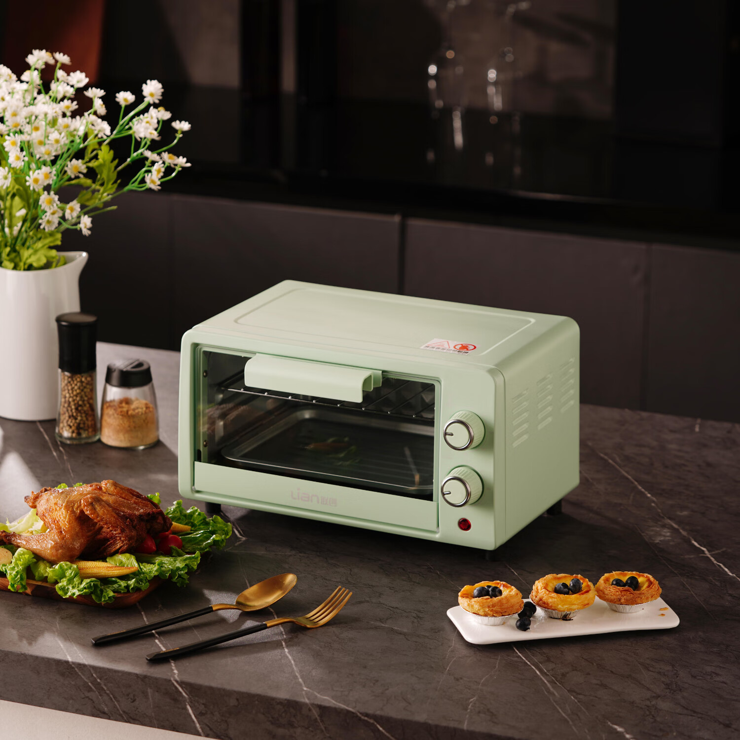 烤箱虽然个头很小,但是一点不耽误烤东西,很方便,预热也很快,烤东西也很快,不错