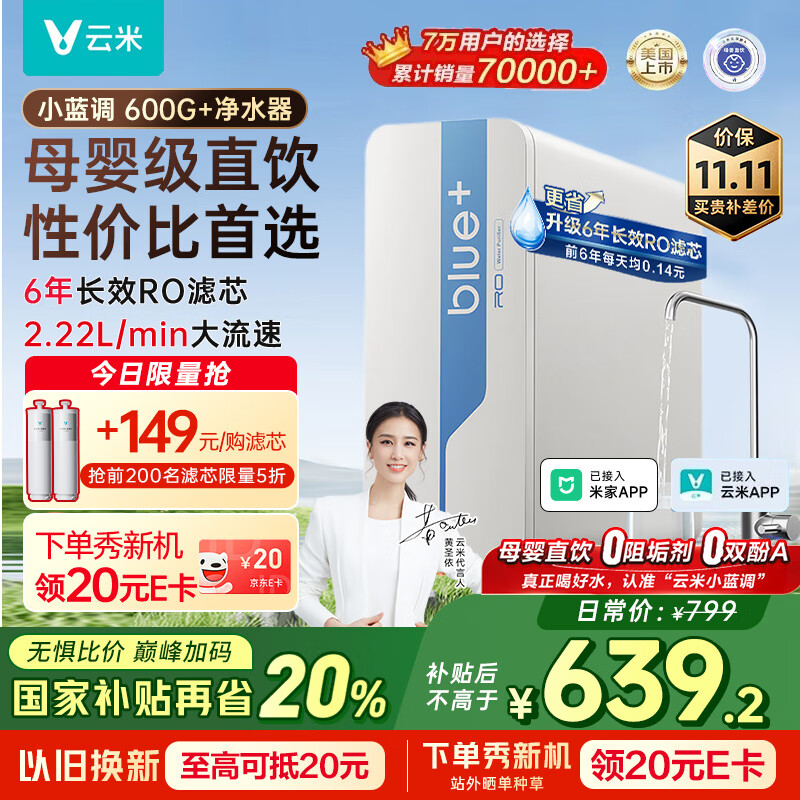 攻略了很久,最终选择了这款的净水器,0陈水,鲜活水,1000G,双出水龙头,RO膜5年更换一次,滤芯更换也方便,还可以联网实时检测滤芯耗用,快递速度快,安装师傅也专业,服务很好,赞♥