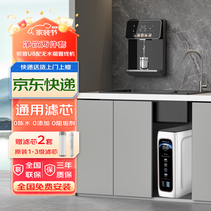 讨论真实锐普U8双出水净水器值得买吗?优缺点点评净水器颜值高是邻居家买了介绍买的,今天刚装上非常满意。买的是24小时鲜活水款,水龙头杀菌,非常喜欢这个功能。家里有小孩还是要有净水器比较放心。物流很快买了一天就收到了。收到约了师傅上门安装,头天预约第二天就安装好了。客服也很给力疑问都帮助解答,客服服务以及售后安装师傅,物流给五星好评。出水速度:出水量比之前买的大很多,出水流畅,家用足够静音效果:不吵,关上橱柜基本上没啥声音了、也不是24小时制水,噪音可以忽略外形设计:小巧精致,之前买的净水器竖不起来,占用了几乎厨下整个空间,这款只占用了三分之一的空间,旁边还可以放东西、安装服务:师傅很专业,很快就安装好了,细心给说了注意事项、