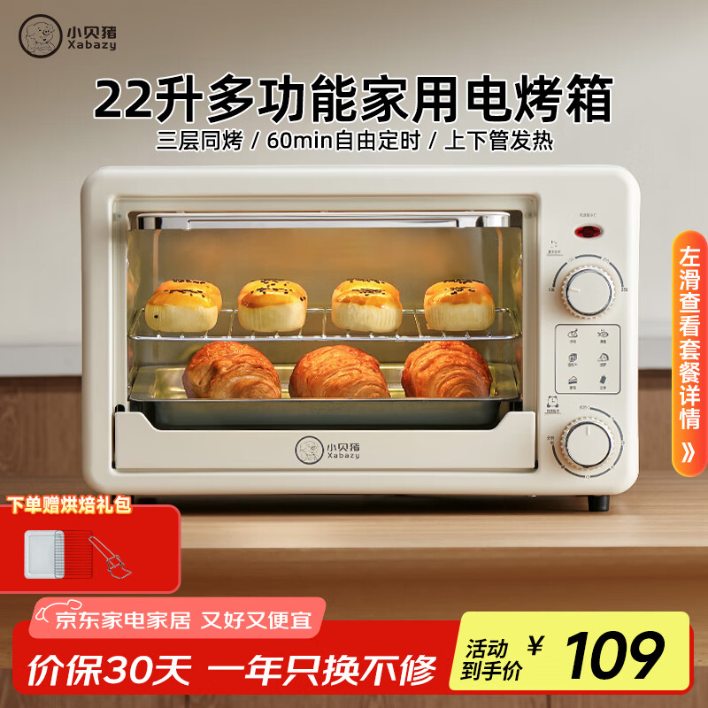 来说说小贝猪 XABAZY22L双旋钮电烤箱真的好吗?参数颜值很高,而且是空气炸锅与烤箱一体机,非常期待了!一收到货就赶紧用它烤了一次面包,还烤了一次蔬菜,都很不错!温度时间都还是大致设在之前用烤箱时的经验,没有太大区别。再用一段时间看看吧,目前还是挺满意的。这款占空间小,很适合单身合租房子一族,不占地儿价格上压力也不会太大!卖家的服务和发货速度一流!当天下单,第二天到货,因为承诺第二天到货,卖家还特意给我打了电话,说明运输的各种情况,十分贴心!晚上,快递员送来一个好大的电烤箱。虽然还没来得及使用,但是外观和颜值已令我非常满意!时间、温度、功能三大旋钮操作起来不复杂,老年人也适合,不会眼花缭乱摸不着头绪。卖家还给我发了一份电子档的美食谱,看得我眼泛桃花,摩拳擦掌准备美美哒做美食啦!