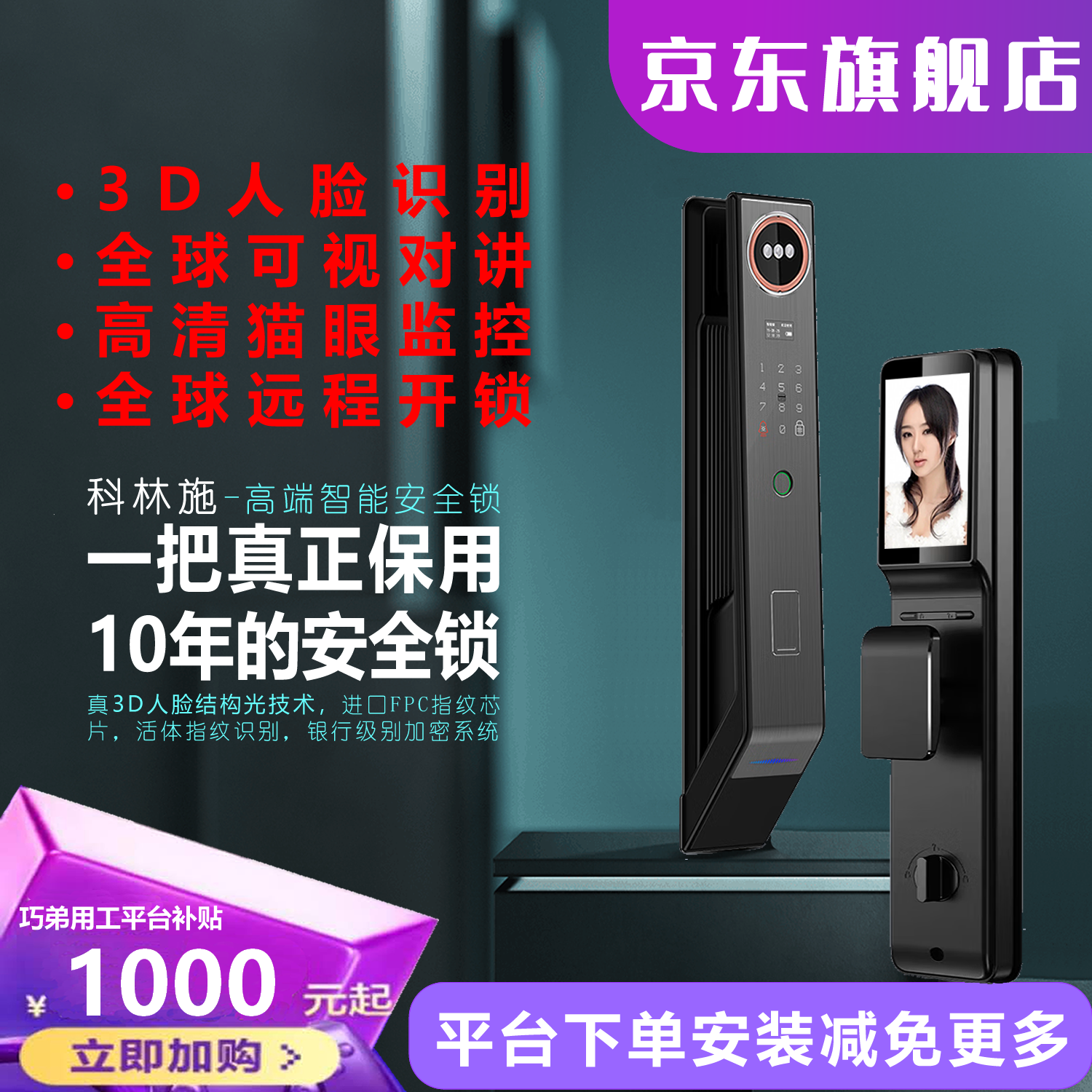 通过同事介绍说鹿客的智能门锁好用、比普通的指纹锁识别可靠性高,下单到货快、预约安装及时,师傅安装好后耐心指导操作方法,使用下来感觉便捷、识别率高,蛮好的