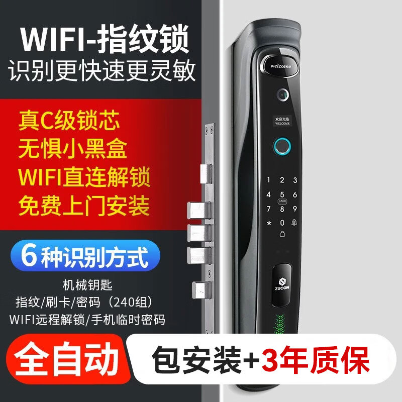 门锁上午收到师傅下午就来安装了,非常好用的一款门锁,外观漂亮,密码指纹磁卡都试过了,很好用的,这下出门不用总想着钥匙的事情了,太方便啦,有需要的放心购买吧,物有所值!
