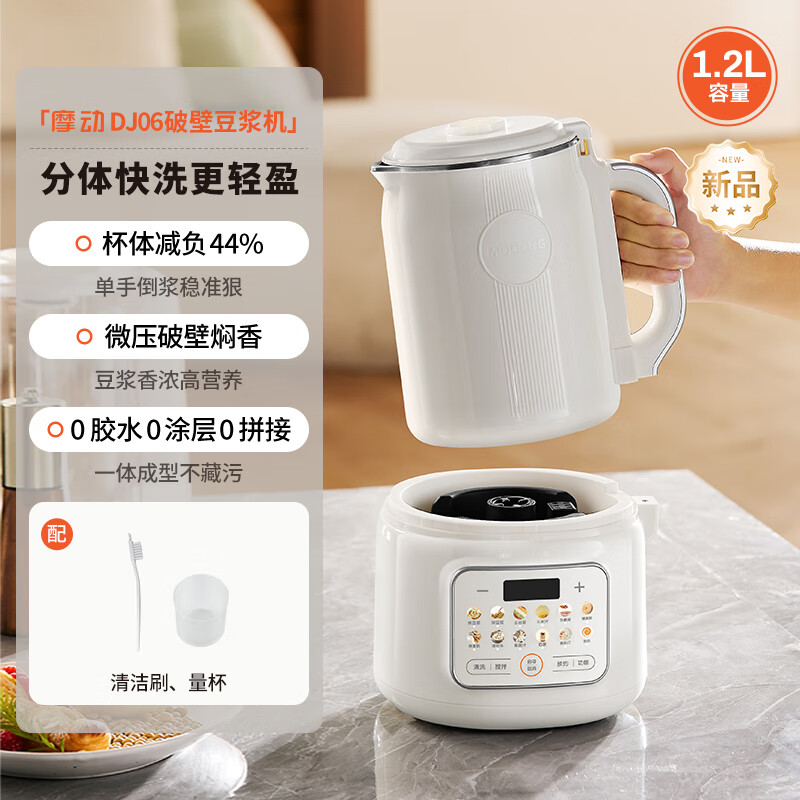 来说说摩动MD-DJ06W测评好不好?摩动MD-DJ06W测评怎么样?外观外形:非常好看,不占地方预约定时:很方便,随时可用,贴心。声音大小:可以接受,打磨口感:很细腻,好喝动力大小:很不错产品功能:很全面,可以做多种美食。种草破壁机很久了,犹豫了很长时间,趁着活动买了这款破壁机,真的太方便,太好用了,很喜欢。外观外形:外观小巧美观,轻巧方便,大气简约声音大小:声音较大,交替打磨,停一会,打磨一会预约定时:注意关好盖子,否则无法启动机器打磨口感:一般能磨碎,如果豆子放的太多,有些无法磨浆,只能成渣动力大小:动力还行产品功能:产品功能:产品缺点较大 ,会溢出,噪声大,容易糊锅,部分豆子无法磨碎,自清洗无法洗干净,还需手动刷子清洗。优点,轻便小巧,一人喝豆浆正好,七天无理由退货,一年质保,本地仓第二天到货,性价比高,价格不贵。试用了快一周,觉得该产品缺点在我接受范围内,看上了售后服务,希望该产品越做越好。