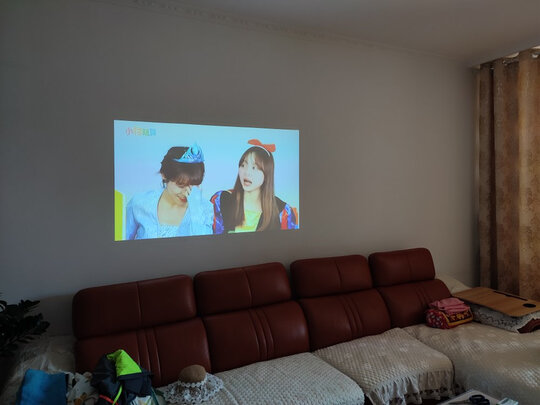 外形外观:非常棒,中规中矩,风扇声音小投影亮度:如图,开灯,白天光线直接打在抗光布上都很清晰投影色彩:比较准,感觉跟同级的电视机不相上下.音质音效:超出想象,虽然标称10W,可不是普通10w.好的不止一点操作难易:之前用的极米,现在这个功能更双面.其他特色:高性价比,出租屋神器,再也不用担心买大电视搬家困难了.