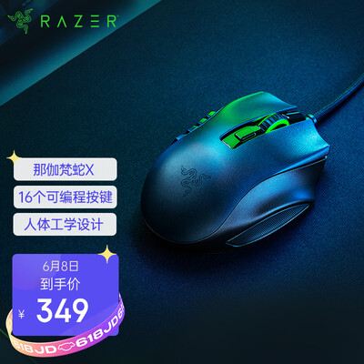 商品名称:雷蛇那伽梵蛇X; 商品编号:100017589052; 商品毛重:185.00g; 商品产地:中国大陆; 货号:RZ01-03590100-R3M1; 最高DPI:16000-20000; 背光:无光; 尺寸:100mm-120mm; 可编程键:9个以上; 质保年限:两年; 特点:其他; 工作方式:其他; 连接方式:有线; 颜色:黑色;