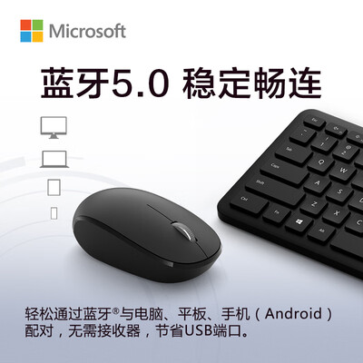 商品名称:微软蓝牙桌面套装; 商品编号:100013440440; 商品毛重:0.8kg; 商品产地:中国大陆; 数字键盘:有数字键盘; 轴体类型:其他; 类型:键鼠套装; 背光效果:无光; 适用场景:办公; 颜色:黑色;