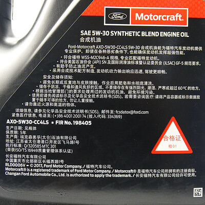 一直在用这个型号的机油,长效,保护好,声音小,就是感觉到了8000公里左右会声音变大!可以接受!福特AX05W30CC4LS第二次购买了。跑了一万公里还行,去四儿子店保养要用五百多。这个才二百多块钱。省了一大笔钱呢!搞活动赶紧入手!一直在京东自营买东西,质量有保障发货快,快递师傅送货上门,很周到,很及时,查了是正品。以前都是在4s店换机油,很贵,现在在京东自营买,更方便,更省钱,以后会继续在京东购物的。