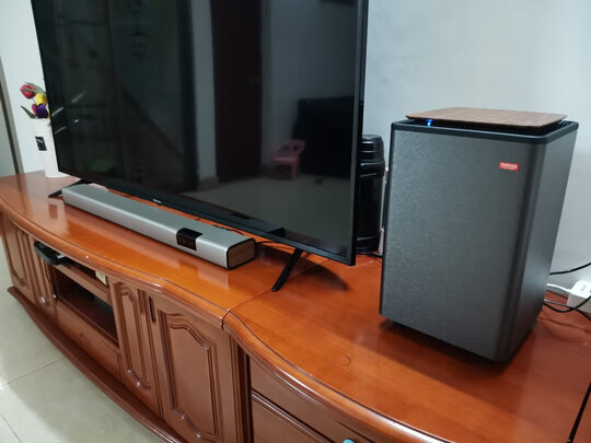 这款SONY音响配合大屏TV效果很好,有影院的临場感!有许多设置,比如环境尺寸等设置之后效果应该更好。低音振撼。还有个night功能,在低音量时仍保持音质清晣。用手机兰牙连接后,播放手机中的歌曲,效果很棒。与SONY的电视机配套用特别顺。