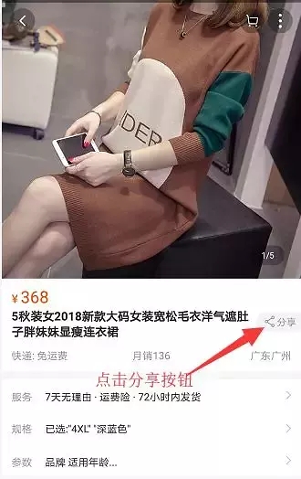 STEP 1 第一步 手机淘宝商品页点击【分享宝贝链接】
